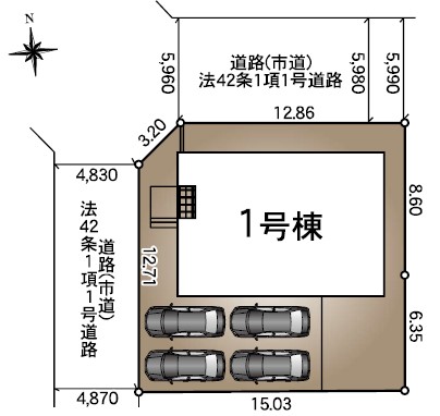 北 公道 幅員約5.9m 間口約12.8m 西 公道  幅員約4.8m 間口約12.7m